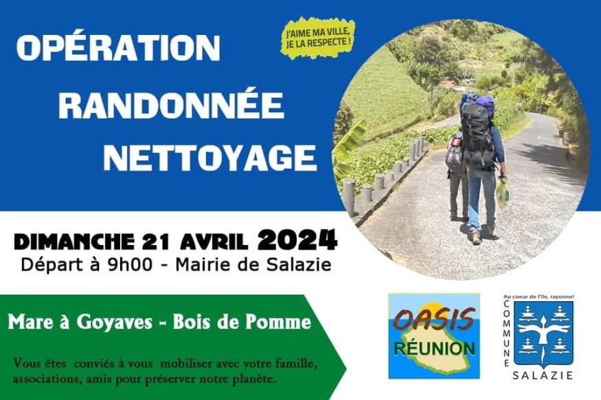 Rendez-vous ce Dimanche 21 Avril à 9h devant la Mairie de Salazie pour une randonnée nettoyage entre Mare à Goyaves et Bois de Pommes.